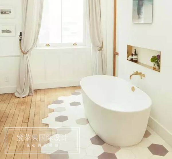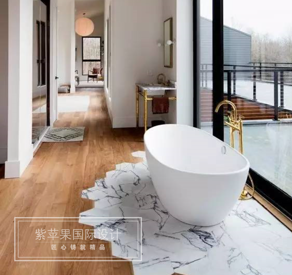 如果癡狂到連浴室都要享受木材的質(zhì)感,可以在接觸水跡的地方拼接瓷磚。