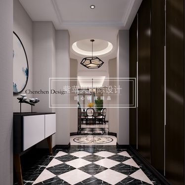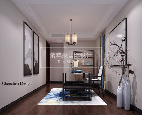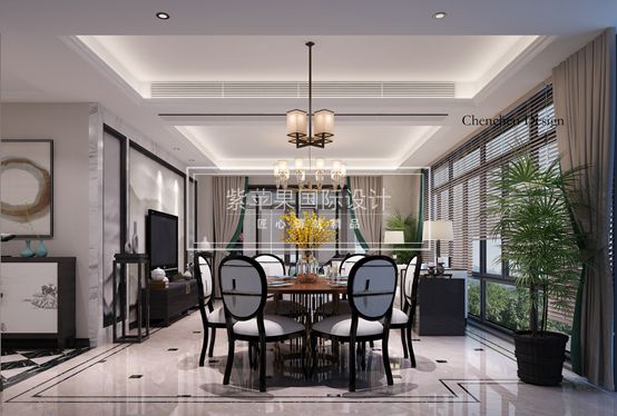本案以這條主線展開,為了使空間不會過于沉悶不適宜年輕人居住,或者過于鮮活卻不適宜長輩居住。將現(xiàn)代設計元素和傳統(tǒng)元素結合使用,傳統(tǒng)元素中的高古、優(yōu)雅的意味以及一直以來古人追求的參與自然、融入自然的情懷與簡約有種天然的契合,因此兩者相遇可以搭配出優(yōu)美、典雅的古風遺韻。