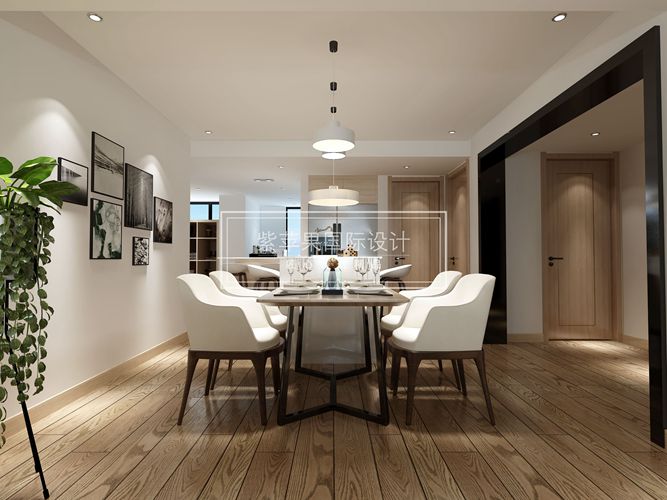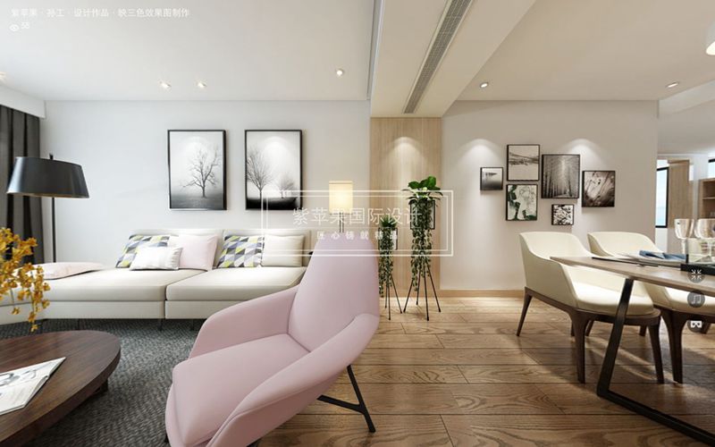 利用過道配以黑色埡口門套將客餐廳與臥室分隔,將動(dòng)區(qū)與靜去區(qū)分開,是整個(gè)空間寧靜而悠遠(yuǎn),沒有過多的裝飾物去點(diǎn)綴,黑白灰的搭配下,粉色與藍(lán)色的單椅便是搶眼的亮點(diǎn)。