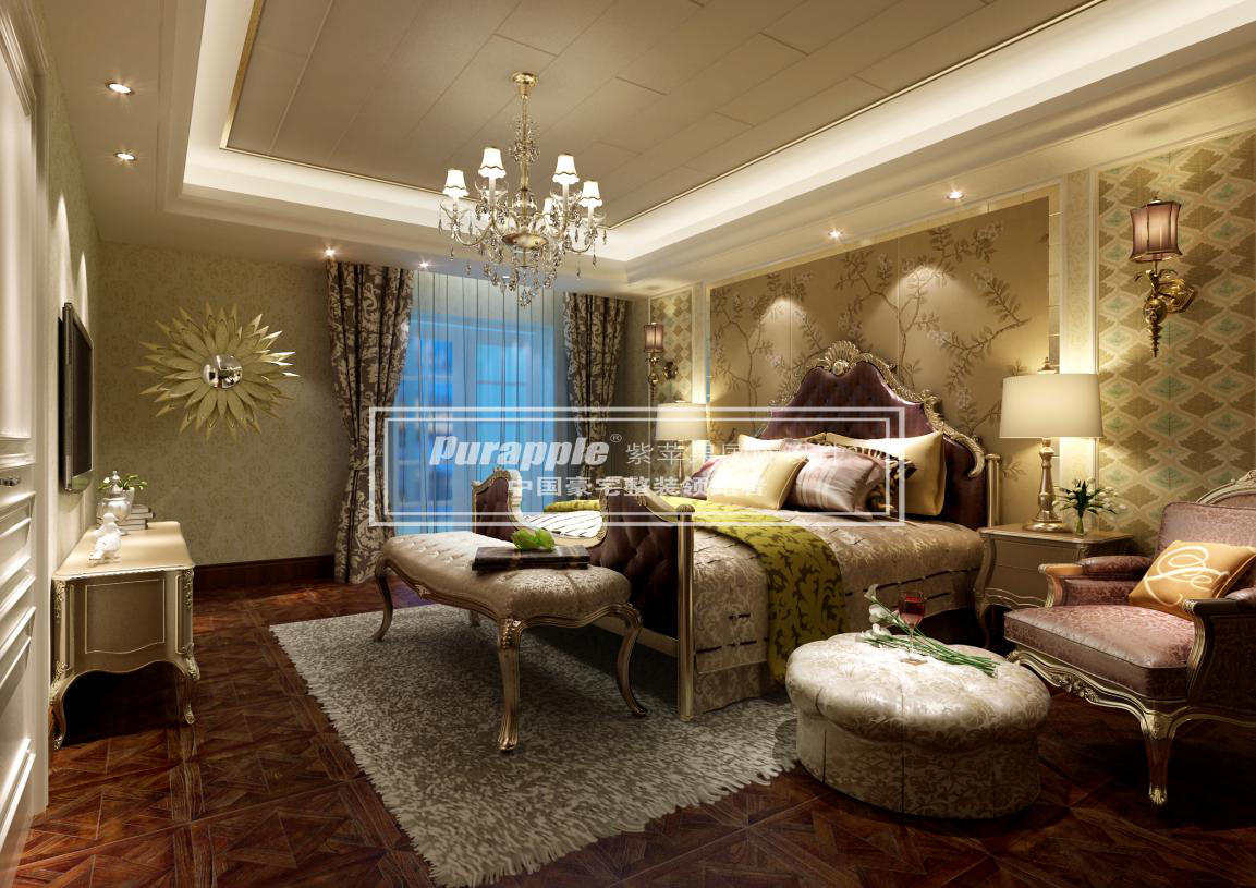 臥室的地面一般以木地板為宜。墻面可用乳膠漆,墻紙或部分軟包裝飾,視需要可對床頭的墻面加以簡單的造型設(shè)計,可兼有一定的使用功能。室內(nèi)平頂宜簡潔或設(shè)少量線腳。