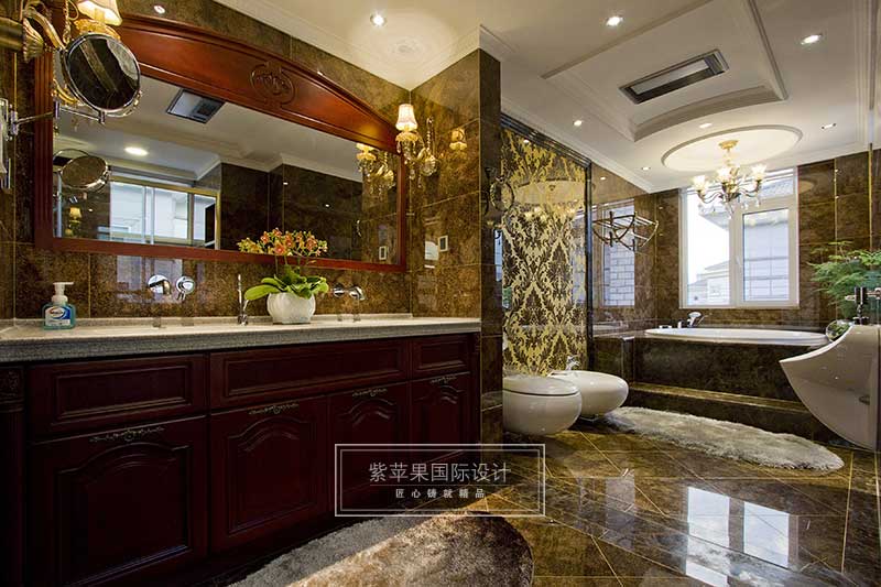 空間框架繼承了實木材料的古典美,玻璃,石材等大面積的運用,塑造了經(jīng)典西式設(shè)計。