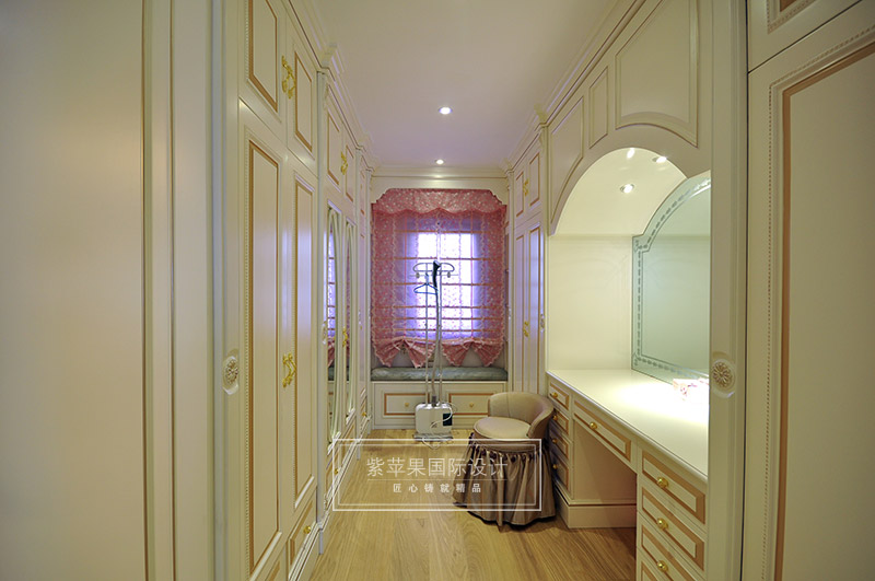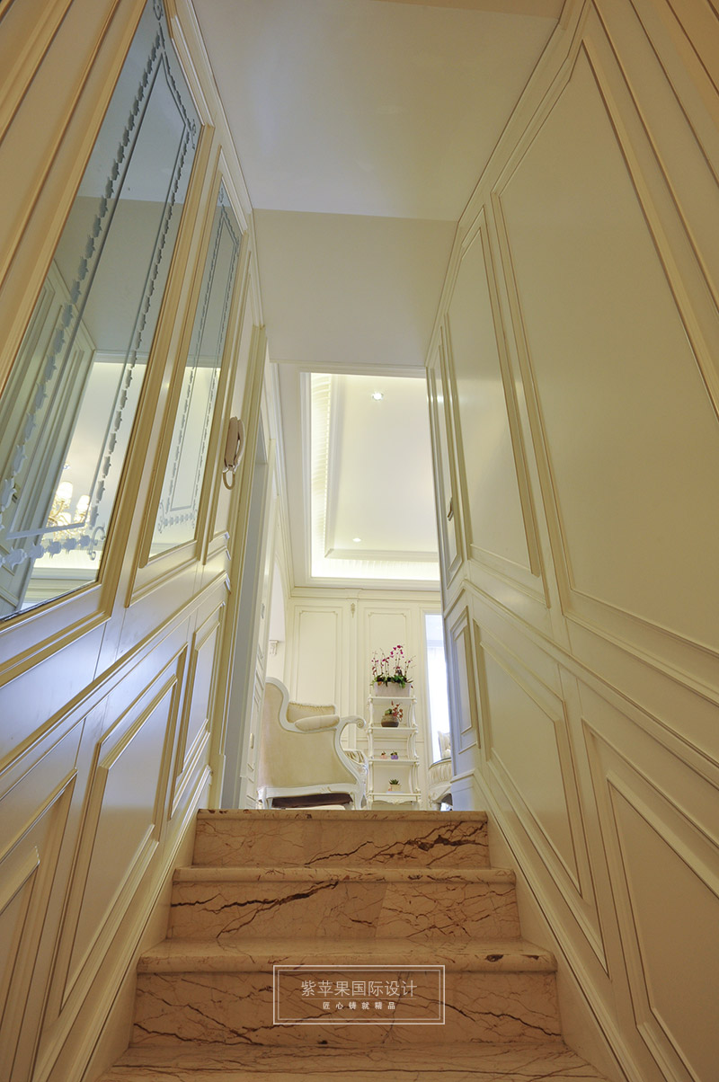 過(guò)道處的細(xì)節(jié)處理上,制作工藝清細(xì)考究,在壁燈柔美燈光的映襯下,造舊白的色澤十分干凈,簡(jiǎn)單不失高雅氣息。簡(jiǎn)潔自然的線(xiàn)條勾勒出過(guò)道空間的浪漫典雅。