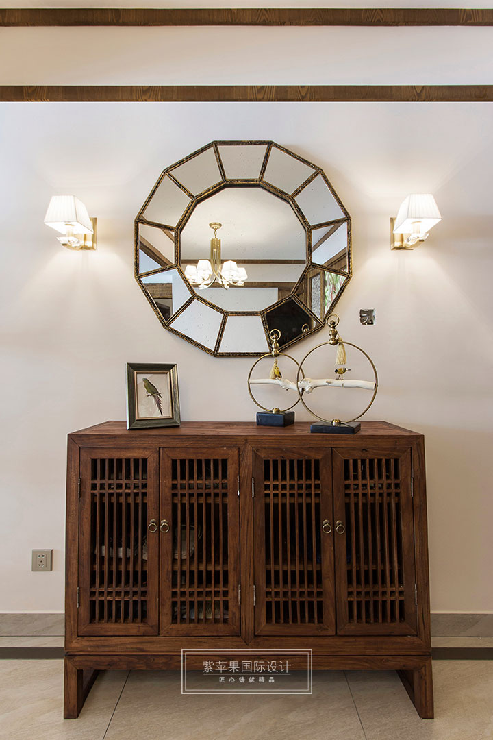 因本案業(yè)主是作為度假需求使用,所以玄關(guān)處并未做復(fù)雜設(shè)計(jì),而是從美觀角度出發(fā)僅作簡單陳設(shè),棕色系鞋柜和精致的裝飾品風(fēng)格獨(dú)特而別致,雖是簡單陳設(shè)卻不感隨意潦草,讓到訪者一入門就深感業(yè)主對生活品質(zhì)的不凡追求。