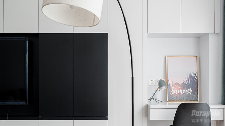 小戶型居家生活一定要考慮收納功能,此次設(shè)計(jì)充分利用空間安裝了既實(shí)用又美觀的儲(chǔ)物柜和鞋柜,以滿足日常居家需求。