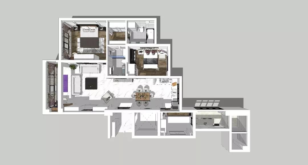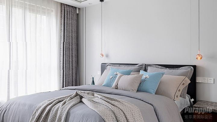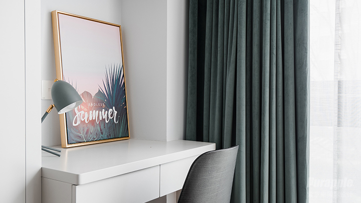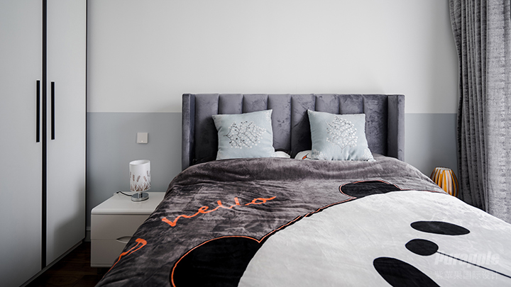 本案主要以清新留白為主要設(shè)計(jì)手法,通過墻頂面線條勾勒出獨(dú)特的造型使整個(gè)空間不單調(diào)層次感強(qiáng),墻面留白加上裝飾畫的點(diǎn)綴賦予較強(qiáng)的視覺沖擊,整體色彩搭配溫馨柔和又帶有愜意的感覺。