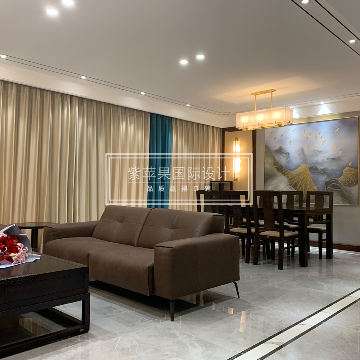 新中式的客廳,將傳統(tǒng)中式元素與現(xiàn)代材質(zhì)完美結(jié)合、相互輝映,是對清雅含蓄、端莊豐華的東方式精神境界的追求。