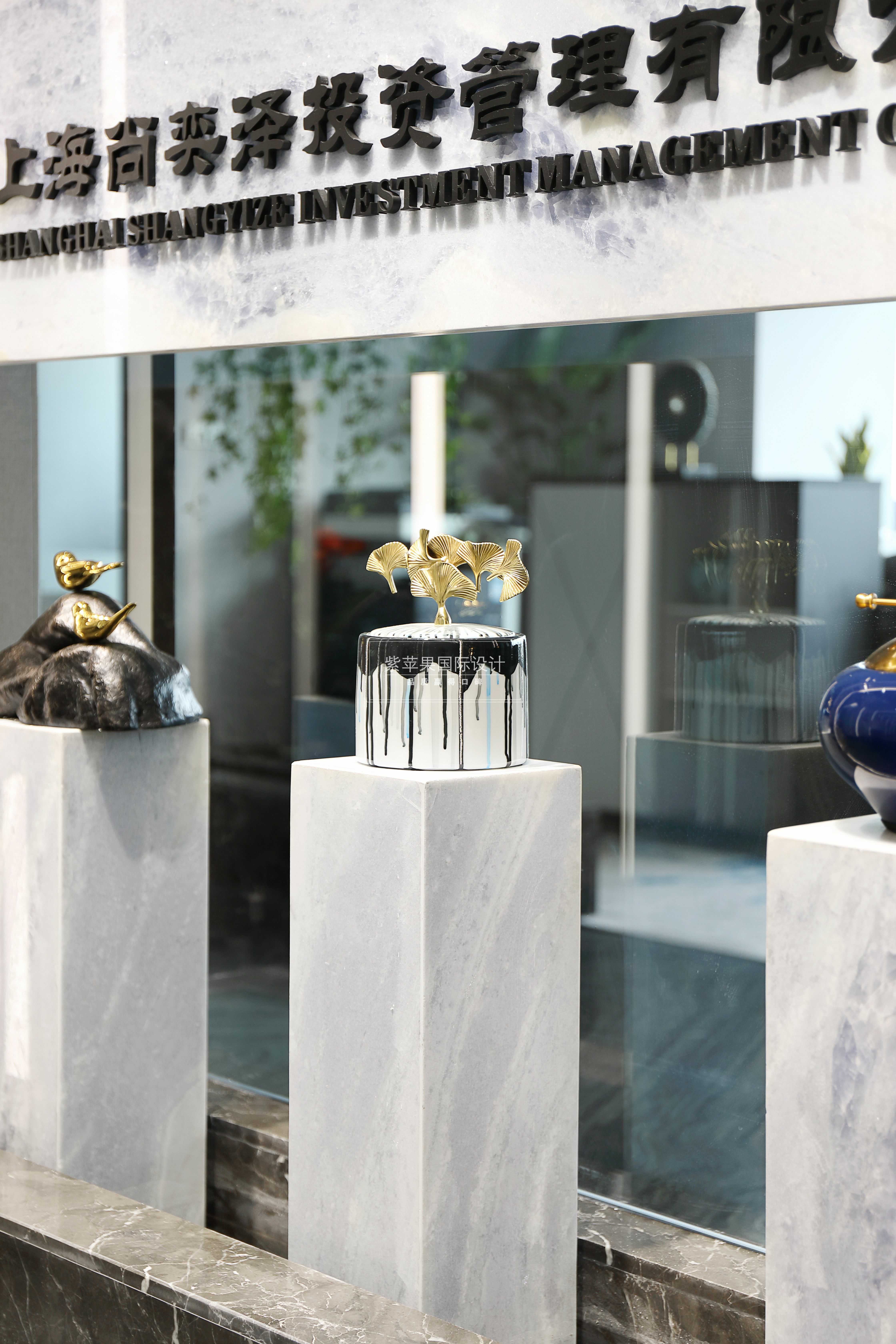 靠墻位置用一面半開放式的展示柜作墻面造型,收藏了很多形狀、顏色及材質(zhì)各異的藝術(shù)品,每個藝術(shù)品都有其內(nèi)在的深層含義,既彰顯了公司主人的獨(dú)特品位,又增添了空間的質(zhì)感和藝術(shù)觀賞性。