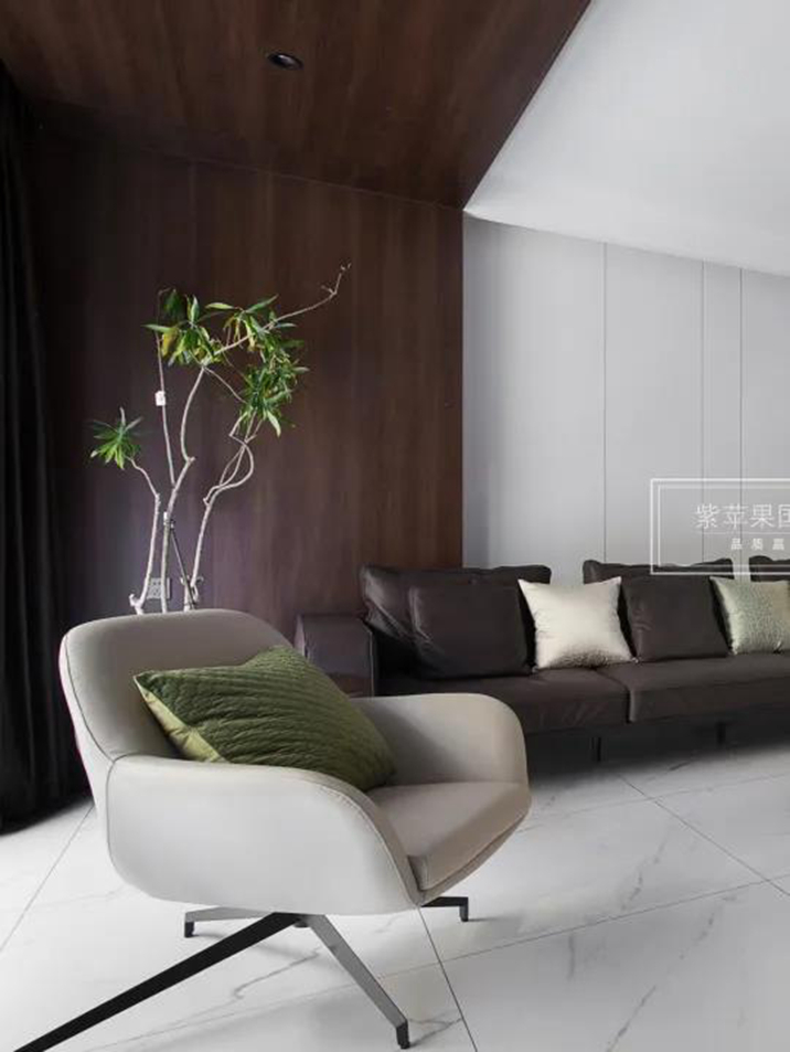 “留白”也是一種元素,恰當(dāng)?shù)牧舭讜?huì)給極簡(jiǎn)風(fēng)格空間帶來(lái)高級(jí)質(zhì)感,所謂“簡(jiǎn)到極致為大雅”。當(dāng)然留白不一定是白色,也可以是其他的顏色,還可以搭配各種不一樣的配色方案和組合,比如白色+胡桃木。兩者的結(jié)合更好地賦予客廳空間以更強(qiáng)的情緒和個(gè)性化的視覺(jué),制造整體氛圍。