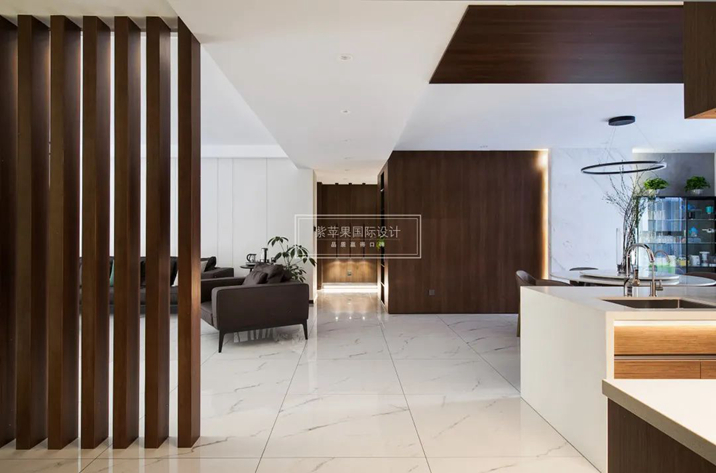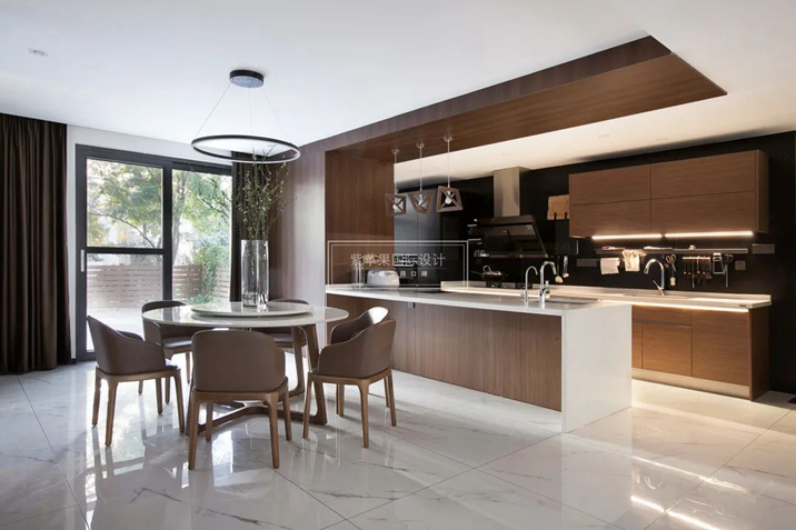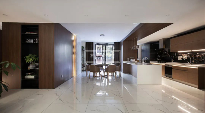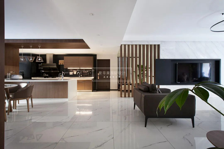 客廳的高級(jí)質(zhì)感延續(xù)到了廚房