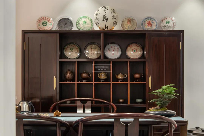 書房區(qū)域除了閱讀和學習還設置一個品茶區(qū),讓理性巧思碰撞心神放松,留茶香伴隨思想遠航。