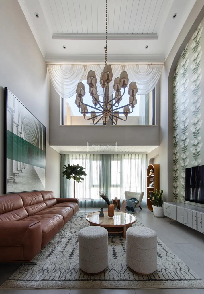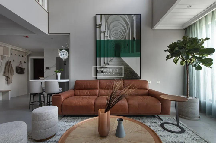 客廳里最佳的C位是棕色的三人沙發(fā),配合焦點透視的藝術(shù)畫,配合大挑空和通透的采光視野,想象中的生活有了畫面。